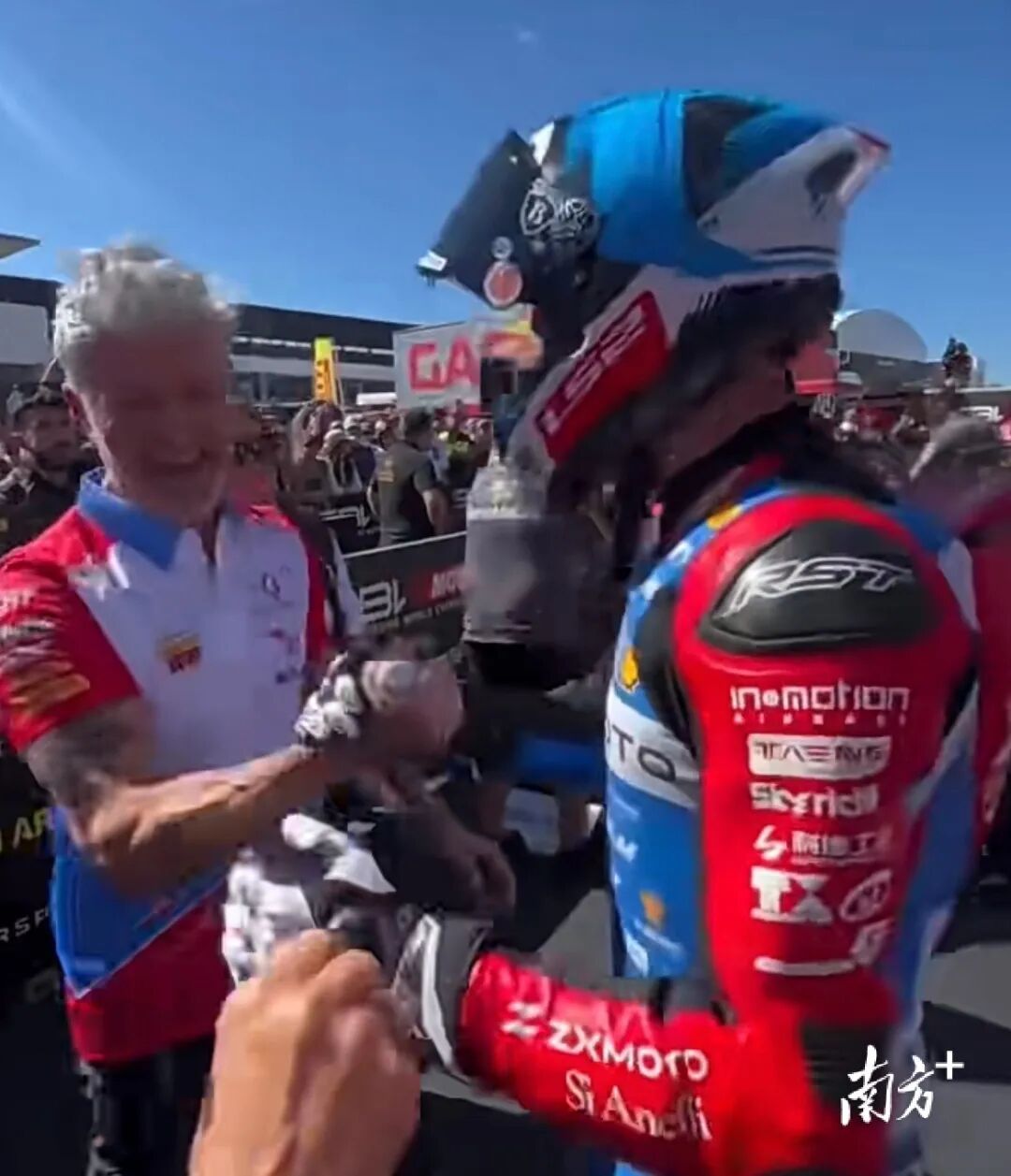 张雪机车夺冠,车手瓦伦丁·德比斯佩戴的LS2头盔来自江门鹤山。